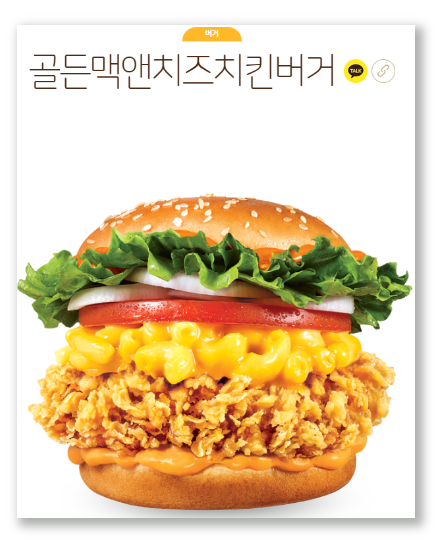 고소하고 꾸덕한 맥앤치즈와 두툼한 닭다리살 패티가 들어가는 햄버거로, 꾸덕한 맥앤치즈와 육즙이 흘러넘치는 패티, 더불어 느끼한 맛을 사로잡아주는 매콤한 치폴레 소스까지 함께해 질리지 않고 끝까지 맛있게 드실 수 있는 메뉴입니다. 628kcal, 당류 11g, 포화지방 10.5g, 단백질 29g 으로 전체적으로 무난한 영양성분을 지니고 있습니다.