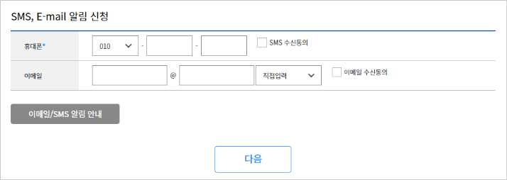 6) 휴대폰 전화번호 및 이메일을 입력 해 알림설정을 합니다.