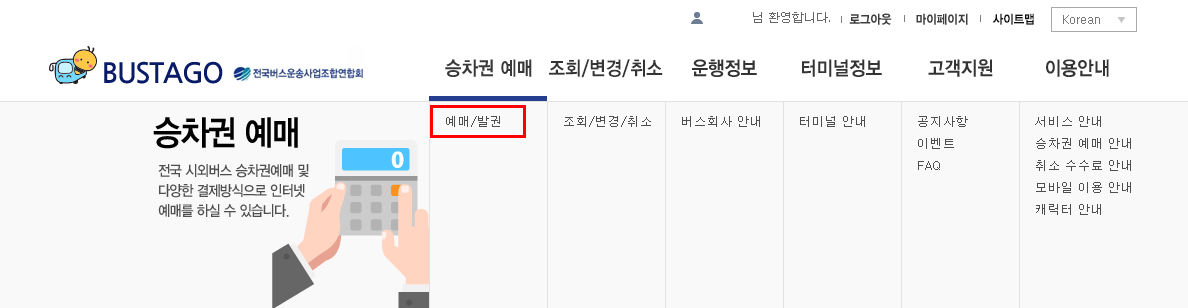 1) 버스타고 홈페이지에 접속 후 로그인 합니다.