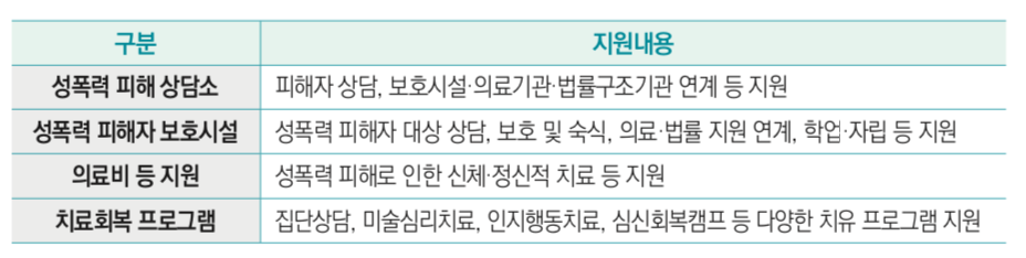 성폭력 피해자 지원은 성폭력 피해로 인한 의료비, 보호시설, 상담소 및 치료 회복 프로그램 등을 지원하며, 지원 대상은 성폭력 피해자이며, 스토킹 피해자도 지원이 가능합니다. 오늘 포스팅에서는 성폭력 피해자 지원 제도 이외에도 성폭력 피해자 지원 제도에 대해 알려드리니 꼭 끝까지 열람하시길 바랍니다.