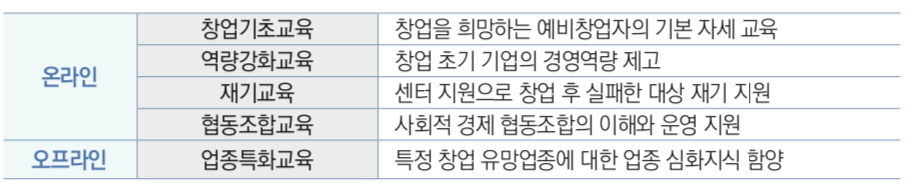 • 창업 유형별·업종별 맞춤형 교육 무상 제공
