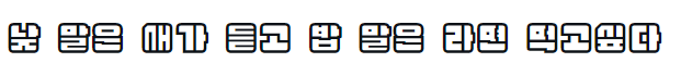 속이 비어있는 귀여운 폰트입니다. 라인이 상당히 두꺼워 글씨 하나하나가 마치 블록처럼 되어 있으며, 영문 호환이 가능해 귀여운 연출이 가능합니다. 개인/상업용으로 사용이 가능하며 영리 목적 판매 외에 수정 및 배포가 가능합니다.