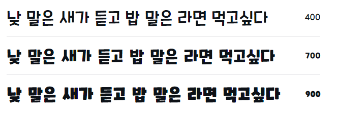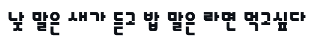 앞서 알려드린 엄마까투리체와 비슷하지만 조금 더 각지고 딱딱한 느낌으로, 제목으로도 어울리며 가독성이 높습니다. 개인/상업용 무료이며 폰트 자체 판매 및 파일 수정은 불가합니다. 추가로, 게임산업군에서는 PC 및 모바일 둘 다 개인/상업적 용도로 사용이 불가능합니다.