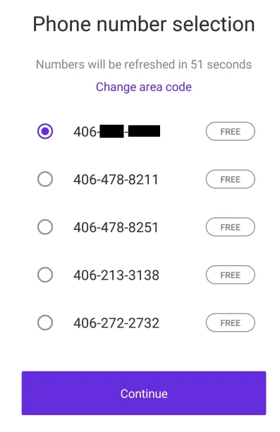 4) 제공된 번호 중 마음에 드는 번호를 선택하면 가상 전화번호 생성이 완료됩니다.