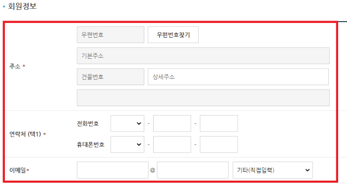 4) 개인정보 수집이용 동의 체크 후 회원정보를 입력합니다.